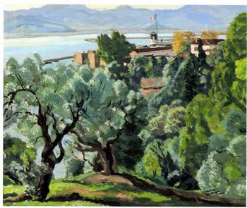 Le port de Bougie à travers les arbres,h/t, 46x55 cm, 1940, 2200€, Marseille, 2009 OEuvres ornementales : Les Colonies, 1925, Athénée de Bx; Foyer civique d'Alger 1933; La vie de saint Augustin, Lycée St-Augustin de Bône. Musées : MBA Bx, Musée Bonnat à Bayonne, Musée national des beaux-arts d'Alger. Ventes : plus de deux-cents oeuvres sont passées en salle des ventes. Bibliographie : CAZENAVE (Élisabeth), La villa Abd-El-Tif et le mouvement artistique en Algérie au XXè siècle, Paris IV, thèse de doctorat, 1994, Arch.Mun.Bx, fonds Coustet, 16 S 104, Catalogue du Musée de Peintures et Sculptures, Bx, Bellegarde, 1933, MONÉDIÈRE (Anne), Marius de Buzon:, l'évocation du rêve exotique, Bx, Musée d'Aquitaine, 1986 etc. Voir la notice de l'artiste dans wikipédia où figure une bibliographie développée. |