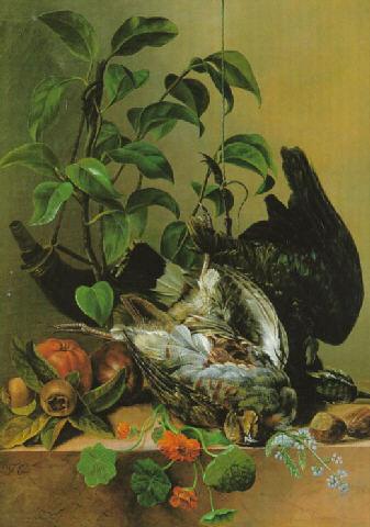 Nature morte au perdreau et vanneau, h/t, 57,5x42,5 cù