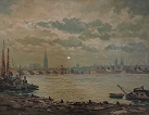 Gabarres sur la Garonne à Bordeaux,, h/p, 45x54 cm (coll.part)