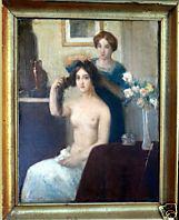 Peintre paysagiste et portraitiste, frère du précédent, élève de Quinsac à BUZON (Camille Frédéric de), né à Bx le 19/01/1885 – 1964. Peintre paysagiste et portraitiste, frère du précédent, élève de Quinsac à Bordeaux et de Gabriel Ferrier à Paris. Voyages en Espagne et en Algérie qui l'inspirèrent ainsi que le Pays basque. Il a participé de 1936 à 1938 à la décoration des foyers de la Bourse du travail de Bx avec Jean- André Caverne, Albert Bégaud et Roganeau : La gloire du port de Bordeaux qu'il a exécutée entre 1936 et 1937. Il peut être classé dans le courant néo-classique ou néo-ingriste. Expositions : SAF dès 1911, l'Atelier, l' OEuvre... Musées : MBA Bx, Alger. Ventes : trois toiles dont deux en 2000 et 2001 qui ont respectivement atteint 2897 et 4875€. Bibliographie :GUÉRIN 1957, DU PASQUIER (Jacqueline), Bordeaux Art Déco, ?, Somogy, 1997. ![]() La toilette, h/t.