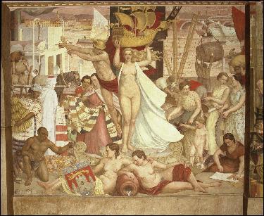 Illustration 50: Le port de Bordeaux, fresque du foyer nord de la Bourse du Travail (Bordeaux) |