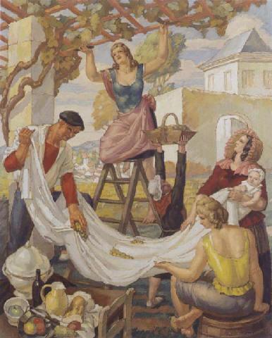 Peintre décorateur. Il suivit les cours de l'EcBA de Bx. Il réalisa la fresque de l' A CAVERNE (André), Bx le 28/05/1894- 03/09/1968. Peintre décorateur. Il suivit les cours de l'EcBA de Bx. Il réalisa la fresque de l' Architecture bordelaise pour la Bourse du Travail à Bx, les décorations de la salle d'honneur de l'aérodrome de St-Jean d'Angély et des salles des fêtes du Teich, de St-Symphorien, de St-Médard-en-Jalles, de la CCI de Bordeaux. Il décora des cafés de Bx, des salles de cinéma aujourd'hui disparues (Luxor et Rex), l'église St-Joseph et les salles de dégustation des syndicats d'initiative de Libourne et St- Emilion. Expositions au SAF, au Salon des Artistes décorateurs. OEuvres : Allégorie de l'Aquitaine, h/t, 190 x 200 cm, sbd, vers 1950.