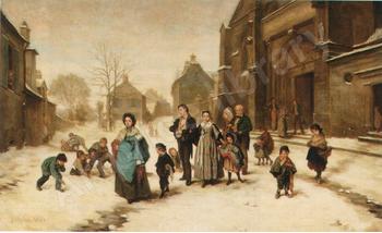 Peintre de genre, élève de Picot à Paris. Expositions au Salon de Paris de 1857 DARGELAS (André, Henri), né à Bx le 11/10/1828. Peintre de genre, élève de Picot à Paris. Expositions au Salon de Paris de 1857 à 1868. Médaillé en 1864. Artiste réaliste comme Théophile Duverger, Édouard Frère ou Paul Seignac, il a peint des scènes de la vie quotidienne mettant souvent en jeu des enfants, genre très apprécié à l'époque. Ventes : une cinquantaine de toiles depuis 1990.. ![]() L'embuscade, h/p, 33x24,8 cm, 4558€, Christie's New-York, 1991 ![]() Sortie de messe, h/t, 51,1x81,4 cm, 1863, 9111€, Londres, 2009 Bibliographie : FÉRET 1889. |